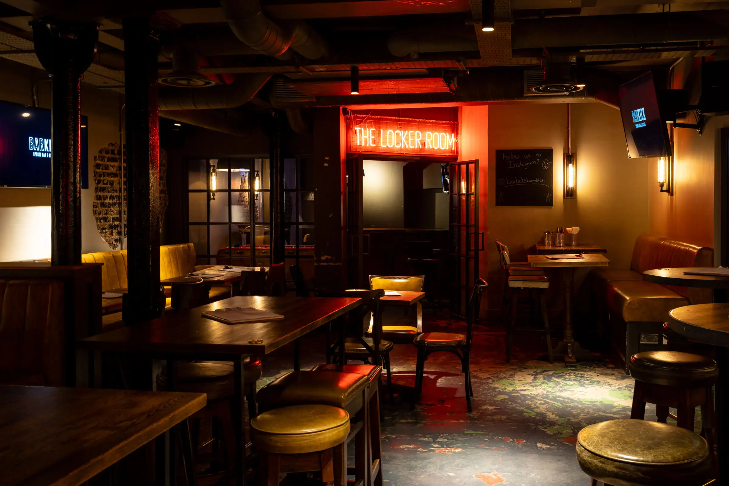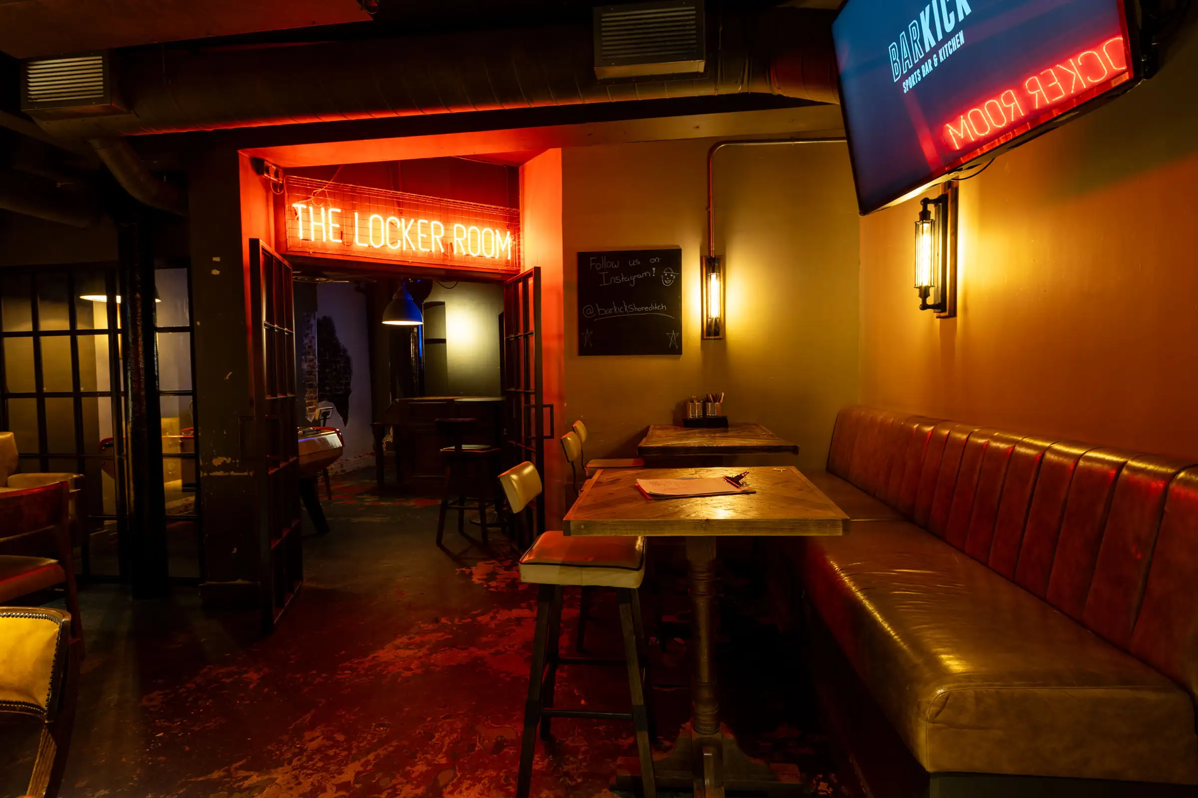 Go big and book our entire downstairs, Bar Kick, featuring an expansive space capable of hosting up to 150 people. Boasting six TV's, foosball tables and a private bar, The Basement is the perfect spot for any party looking to go large.