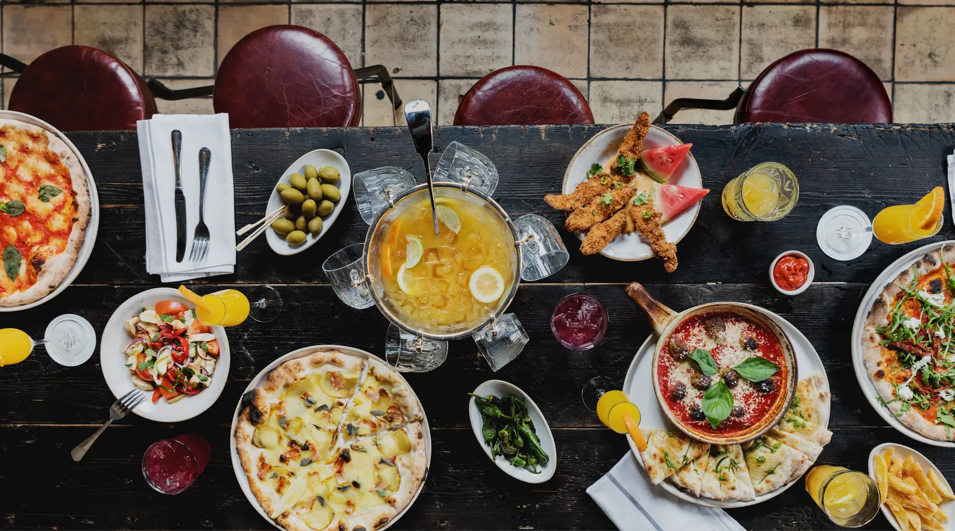 Pizza and sharing plates from our coal oven, from breakfast 'til bedtime